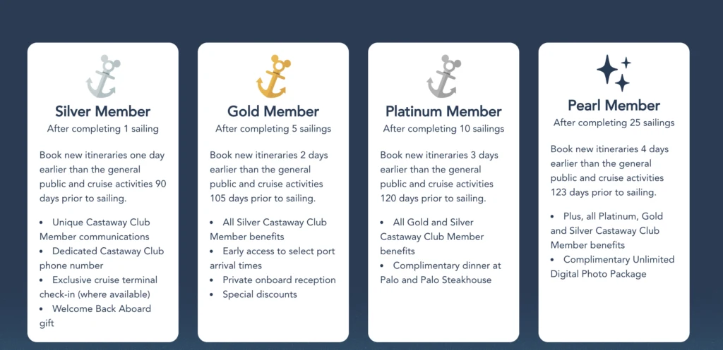 Castaway Club members also have benefits available once they have boarded their Disney Cruise Ship.