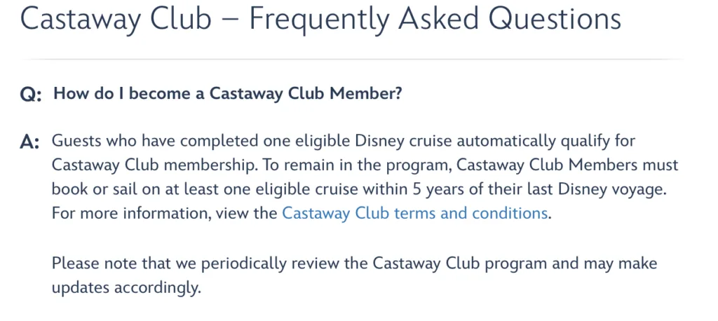 DCL made this major change to their Castaway Club eligibility back in March 2023. This change only came to light for the majority of Disney cruisers when the FAQ section of the DCL website was changed.