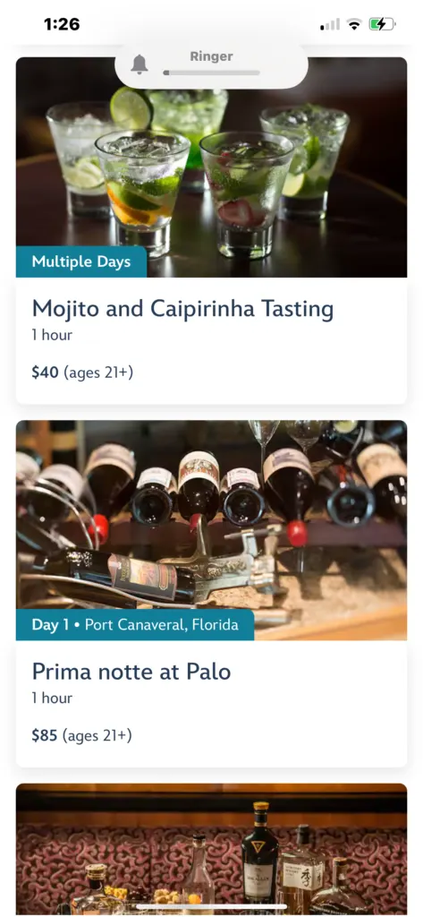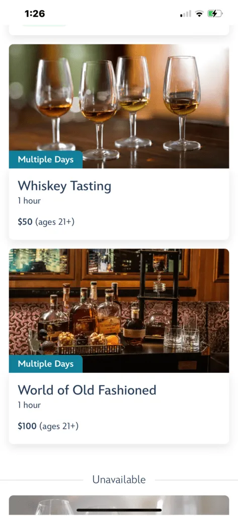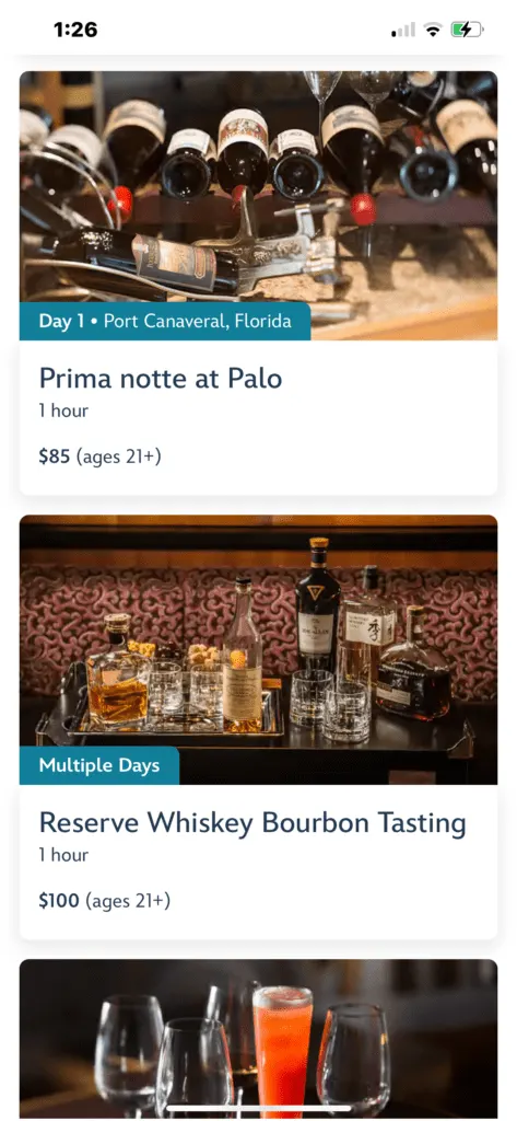 But make sure you keep checking back. I booked the Mixology and the Wine tasting after I go onboard.
