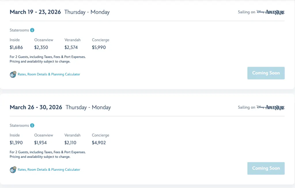So the first sailings will open on December 3, 2024 at 7PM EST.