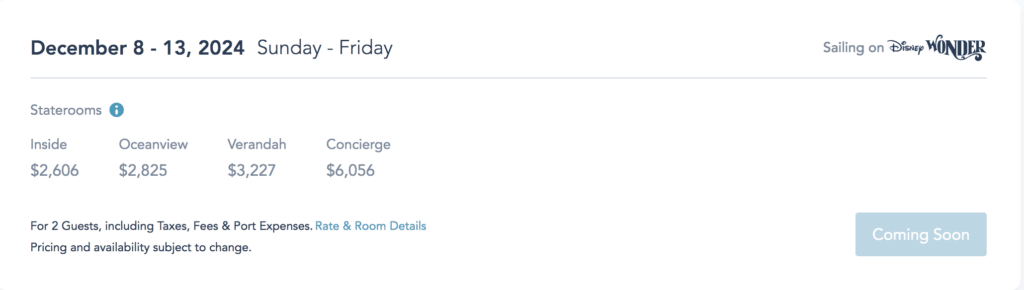 These Disney Cruise prices are shown as they are on opening day. These are very popular cruises and the prices most likely will go up.