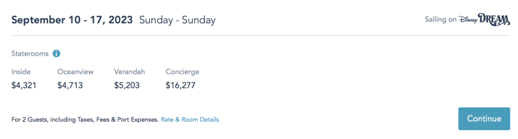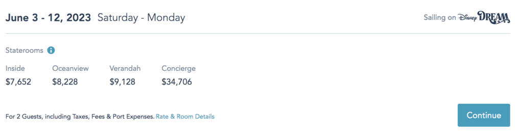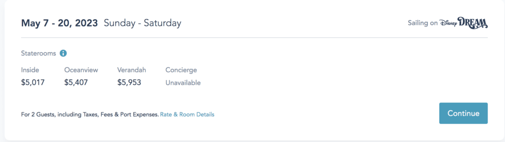 Usually, we don’t see those until closer to the sailing date. That is the starting $7,652 rate which is for a Standard Inside Stateroom Guarantee.
