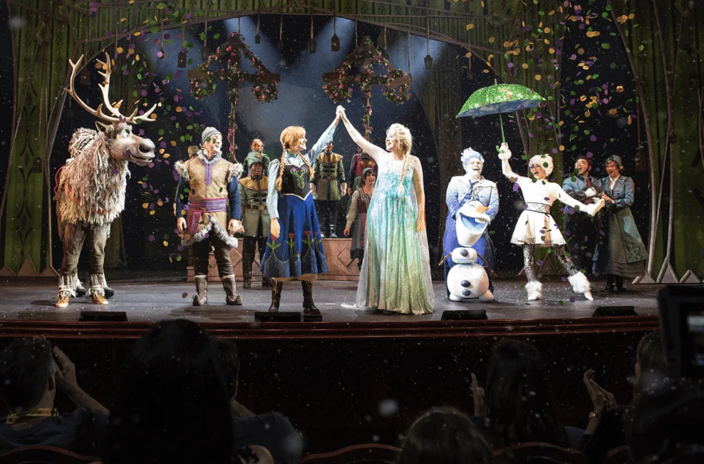 - Catch dazzling Broadway-style productions of “Frozen, A Musical Spectacular” and “Disney Seas the Adventure” in the Walt Disney Theatre. The former is a whimsical retelling of the iconic Disney Animation film, while the latter is an original Disney Cruise Line show featuring Captain Minnie Mouse, Goofy and a host of beloved Disney and Pixar characters.