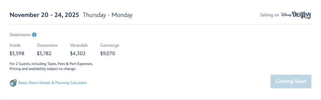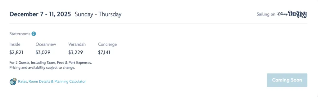 Bookings for Disney Destiny’s inaugural season will open to the general public on September 12, 2024.