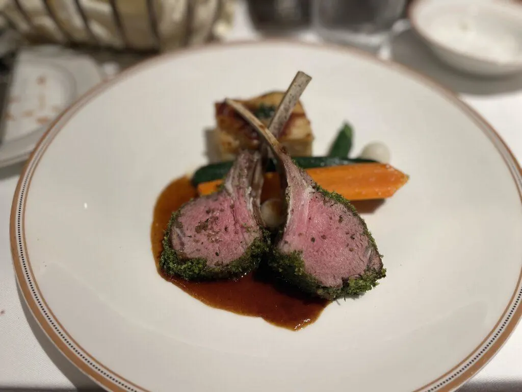 - Italian Flat Parsley and Rosemary-crusted Rack of Lamb Dauphinoise Potato, Roasted Petite Turnip, Carrot and Zucchini, Zinfandel Rosemary Sauce
