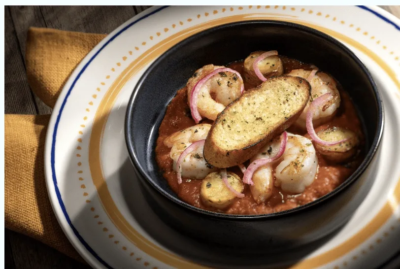 - Abuelita Elena Shrimp Diabla with chili-chipotle sauce, cilantro, pickled red onion, and toasted birotes