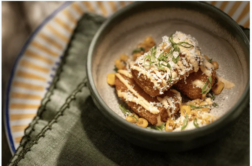 Chorizo Street Croquettes with chili-lime crema, cotija cheese, and cilantro