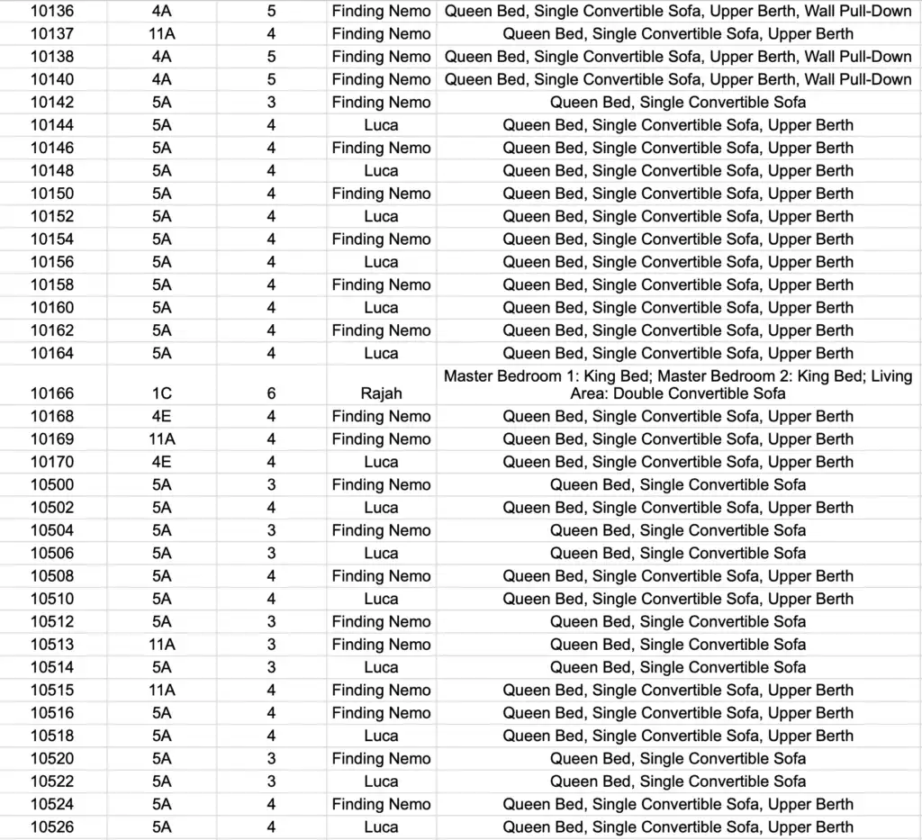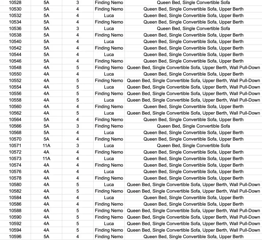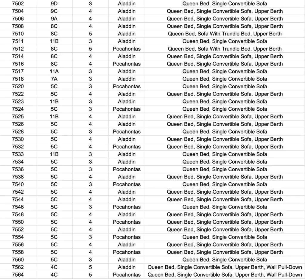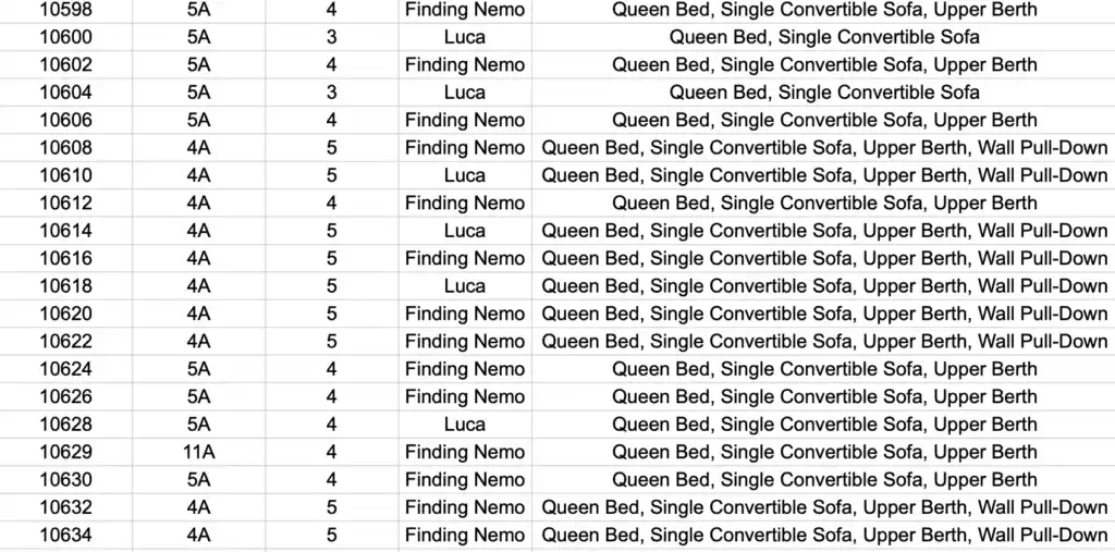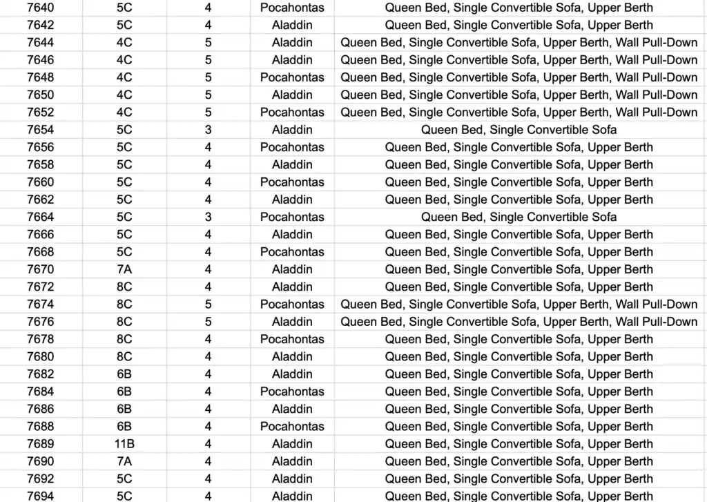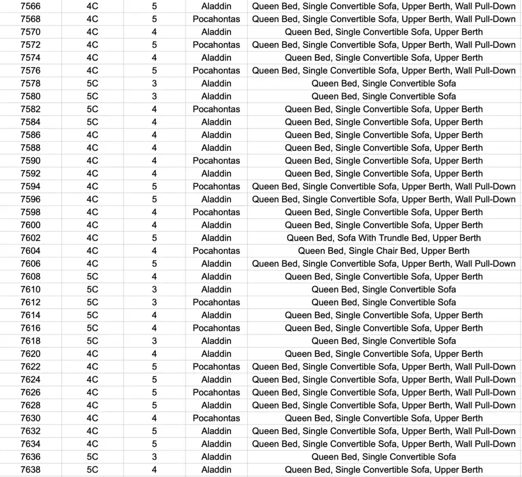 Here is a complete guide to all the stateroom themes – so that you can look up the one you have already booked, or you can use this to decide which stateroom that you want to book.