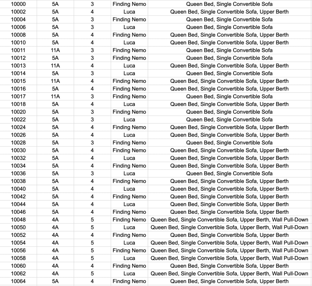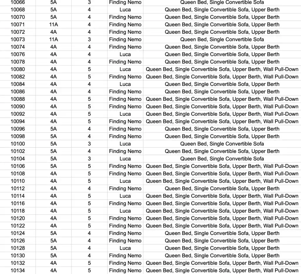 When you look at the lists below you will see a number and a letter identifying the type of stateroom.