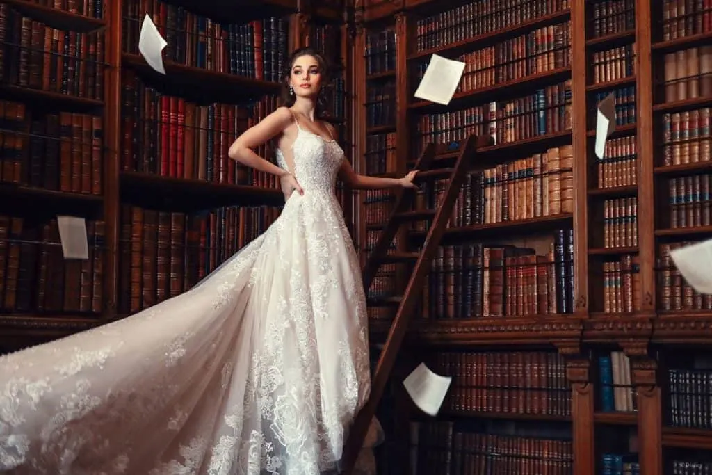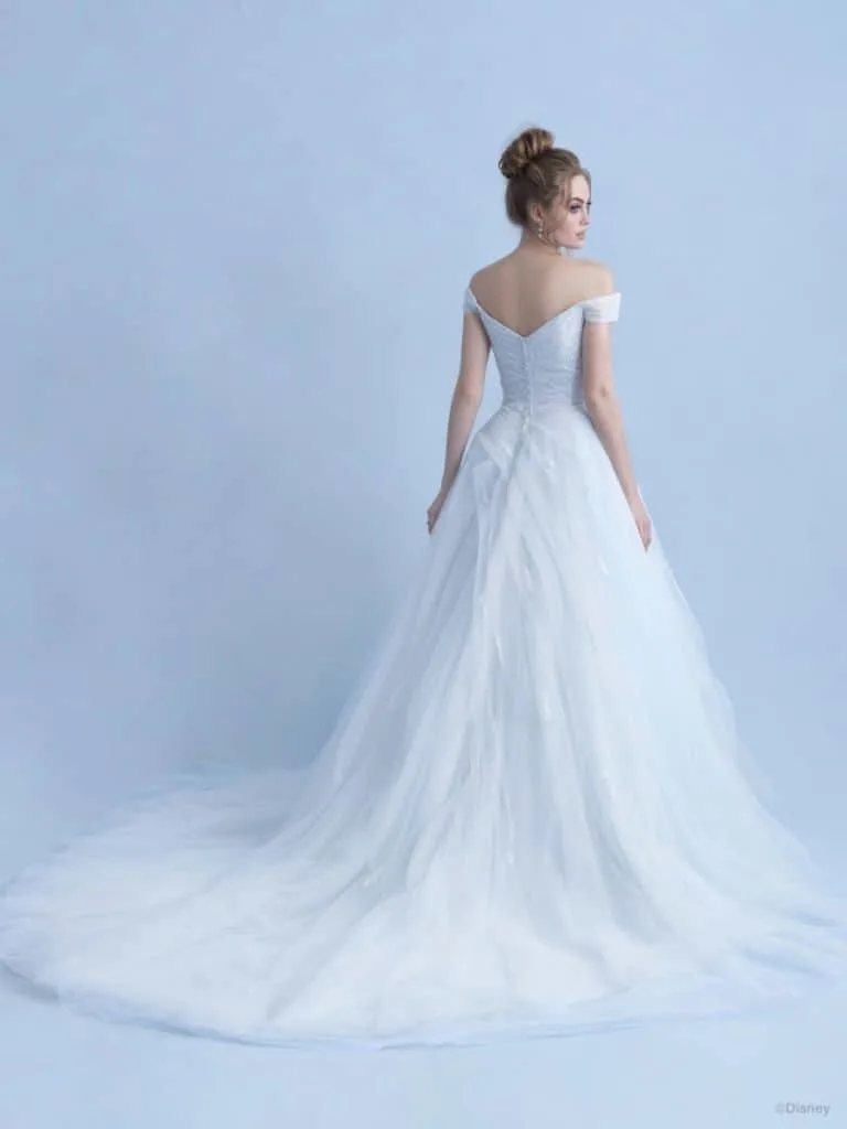 Right now you can choose from wedding dresses inspired by Princess Belle, Snow White, Tiana, Jasmine, Aurora, Rapunzel, Pcoahontas and Ariel.