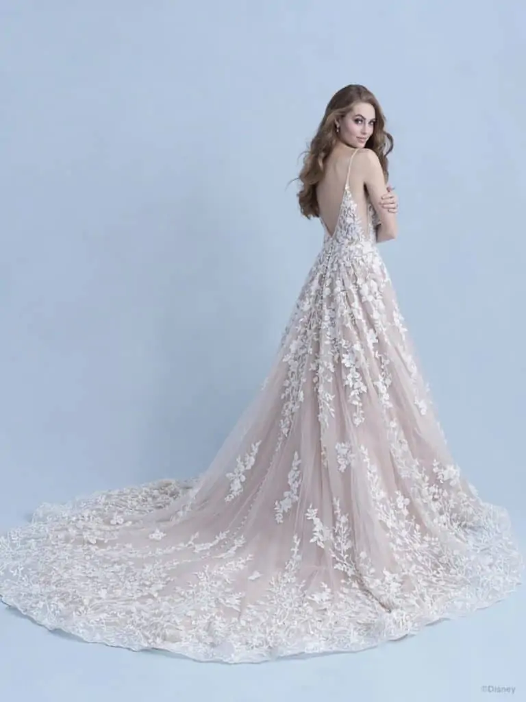 The first is the Disney Fairy Tale Weddings Collection. These are available at Allure Bridal and range in price from $1200 to $2600.