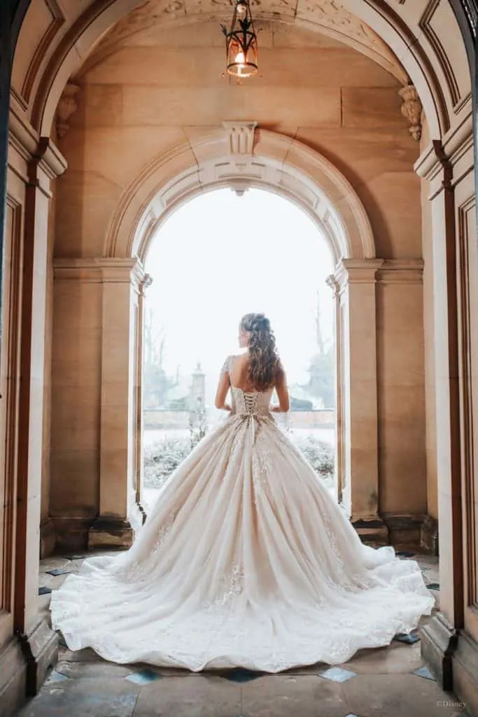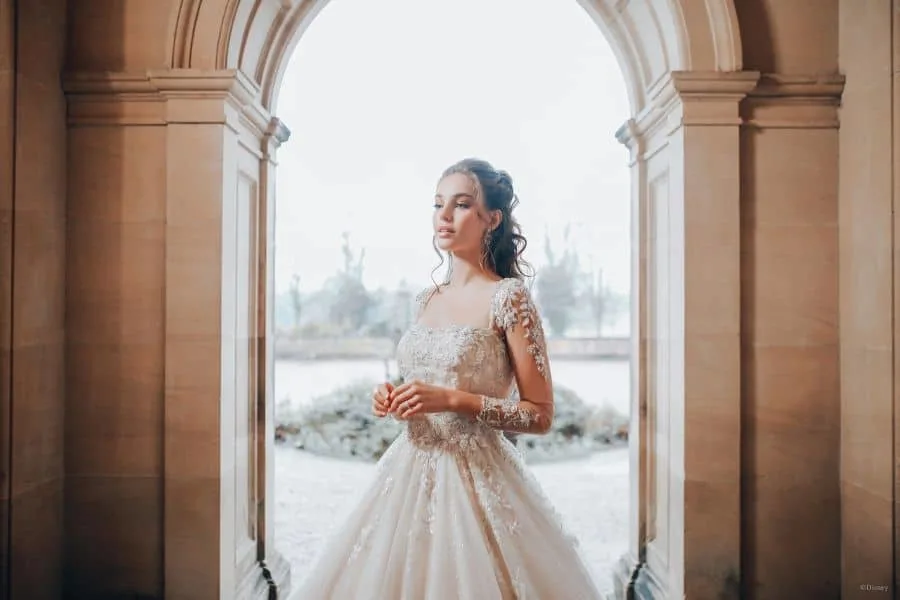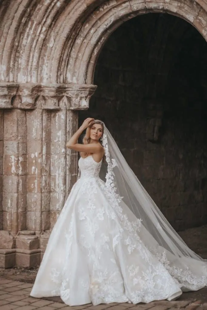 The iconic design for Belle’s ballgown is celebrated in this Disney wedding dress for 2021.