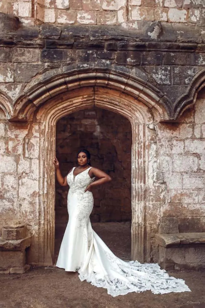 I love the way that this Disney wedding dress is shown on someone of a more conventional size. This shape and design of Disney wedding dress really works well for the fuller figure.