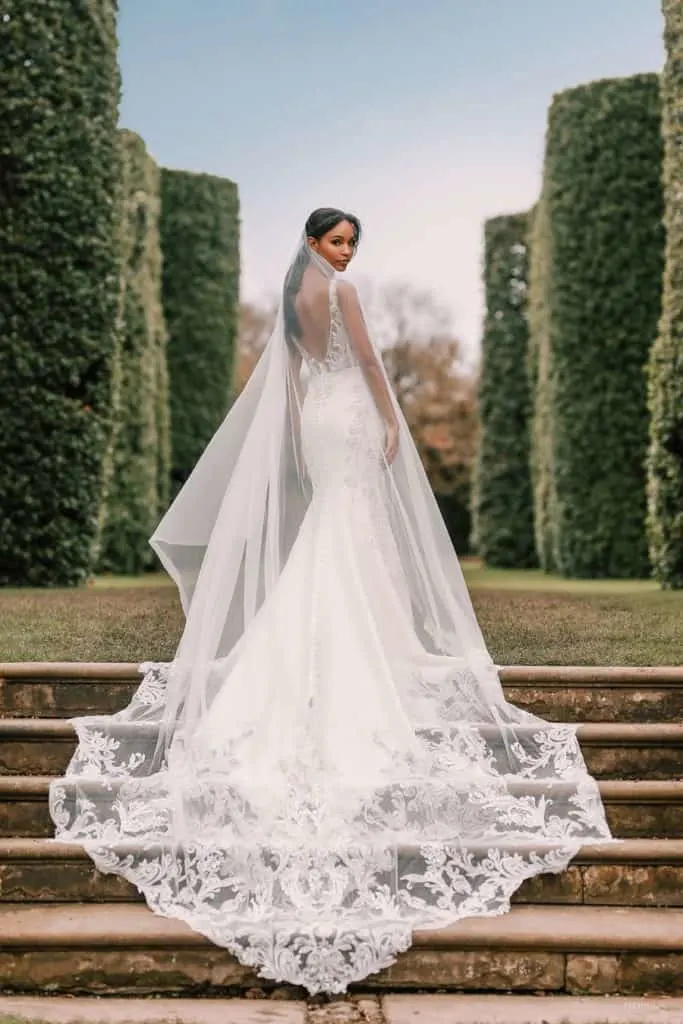The detailing on the beautiful cathedral length train is simply beautiful.