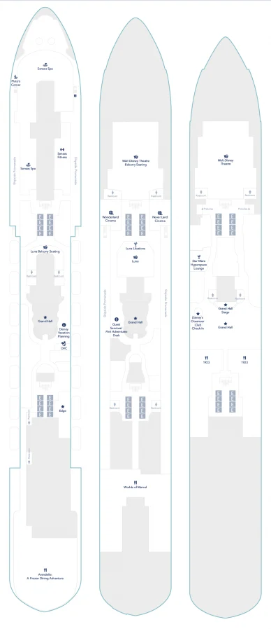 But the design of Disney Wish is very different. To have that beautiful, huge Grand Hall, you have to sacrifice the mid-ship elevators.