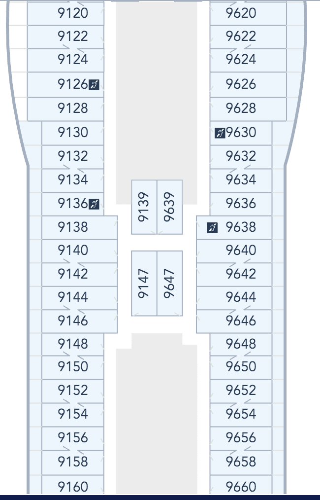 The only accessible Inside Stateroom on Deck 9 of the Disney Wish is 9175. It is highly likely that this will be one of the first reserved when any of the Wish itineraries are released – simply as there aren’t very many accessible Inside Staterooms.