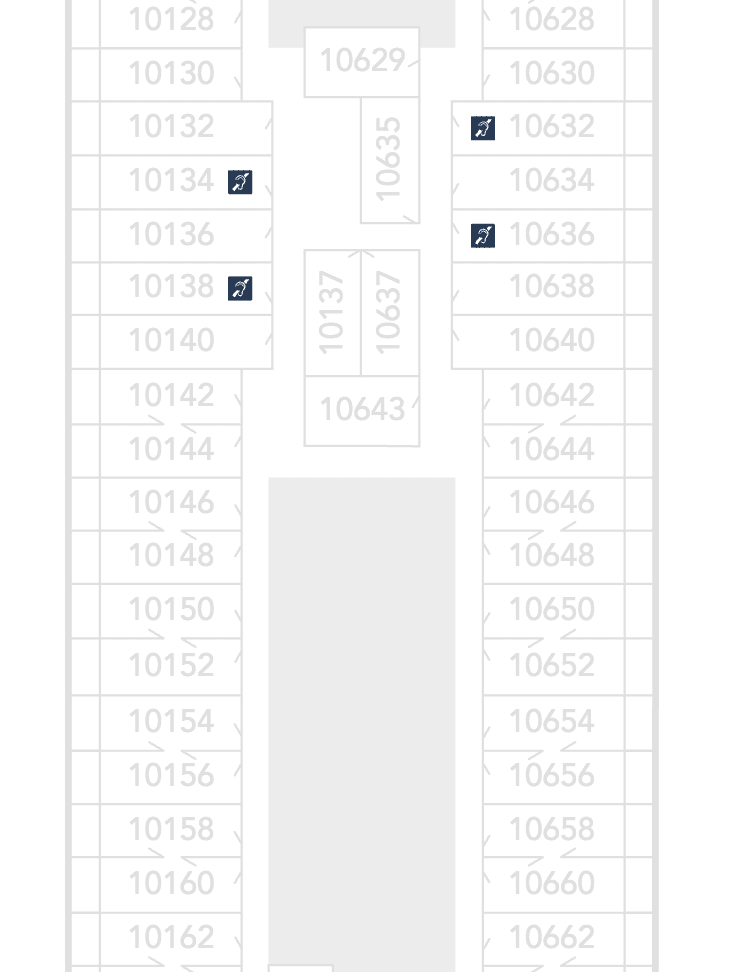 As you can see from Deck 10 on the Disney Wish, there aren’t very many Inside Staterooms available.