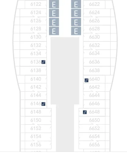 There are just two Inside Staterooms Deck 6. These are 6193 and 6195. These would also be good options for combining staterooms when you need more than two for your group.