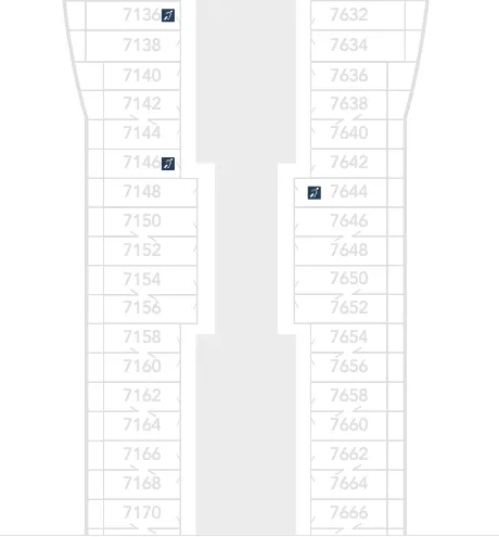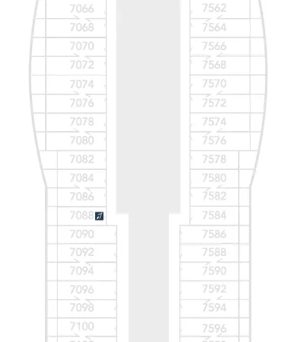 Most of the Deck 7 Inside Staterooms are located Forward.