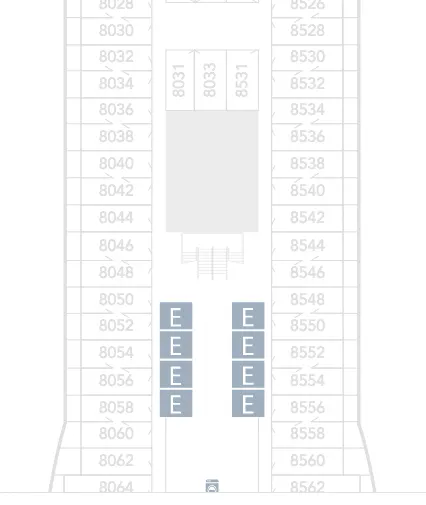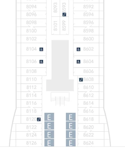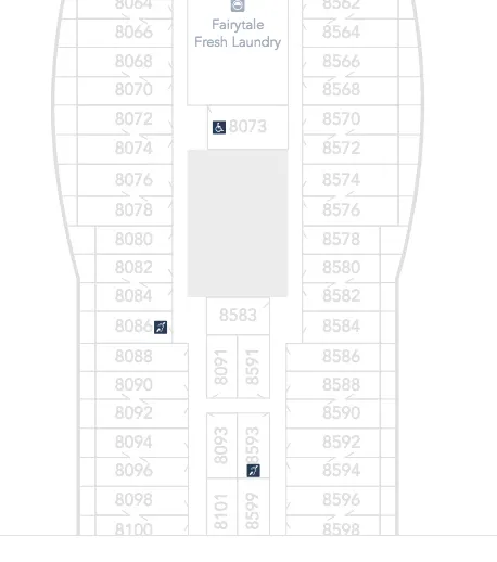Here we can see that the one Accessible Inside Stateroom on Deck 8 is 8073 which is located right next to the Laundry. This is probably not an ideal location as you will likely get some noise as this stateroom seems to share a wall with the Laundry.