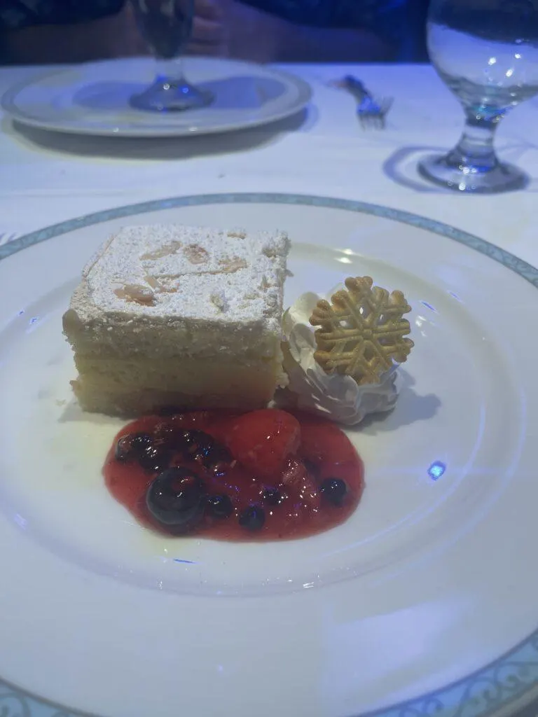 - Kvafjordkake Butter Cake, Baked Almond Meringue, Vanilla Cream, Berry Compote