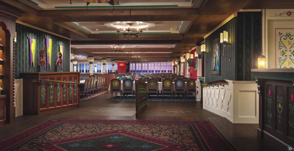 What is worth noting is that the Arendelle restaurant on the Disney Wish is the first space that has been specifically designed for theatrical dining. Tiana’s Place and Rapunzel’s Royal Table were both upgrades of existing space.