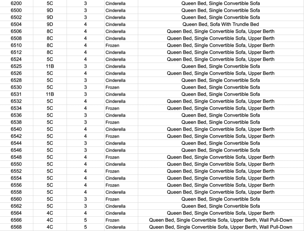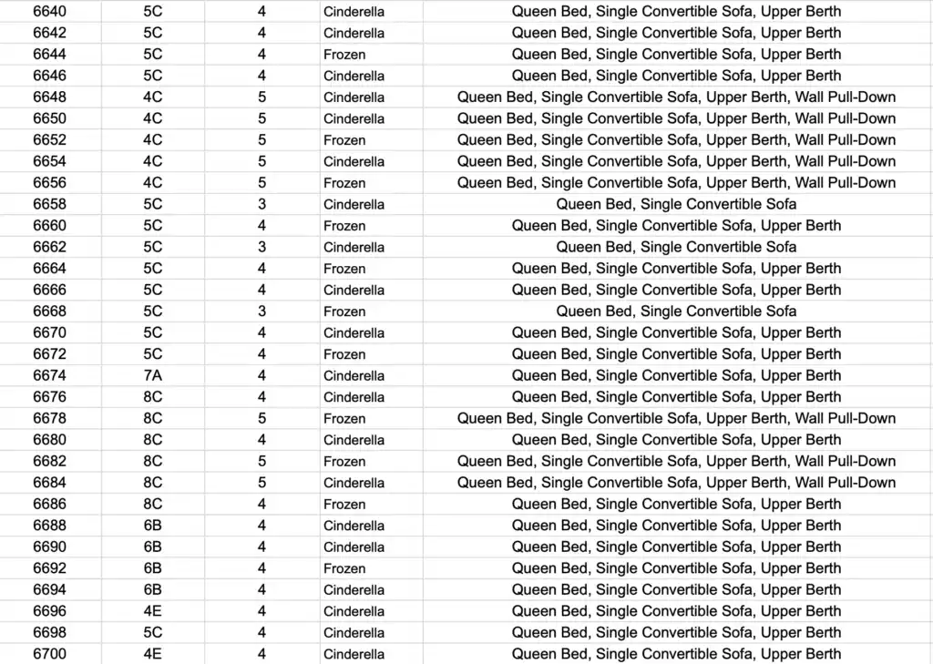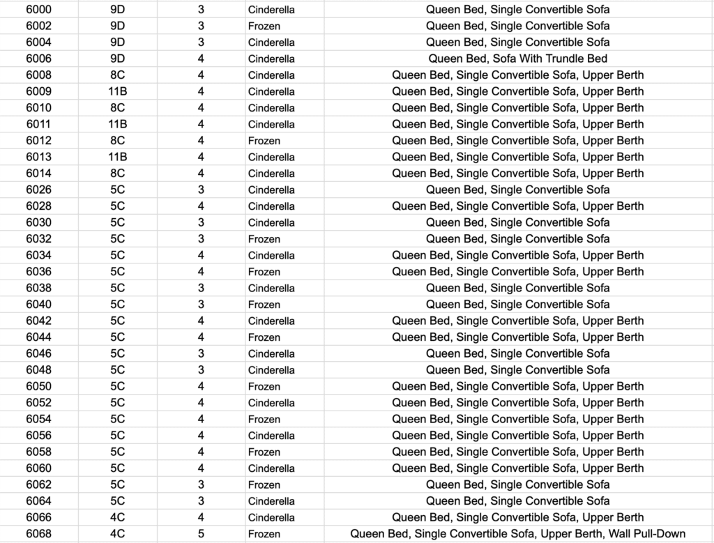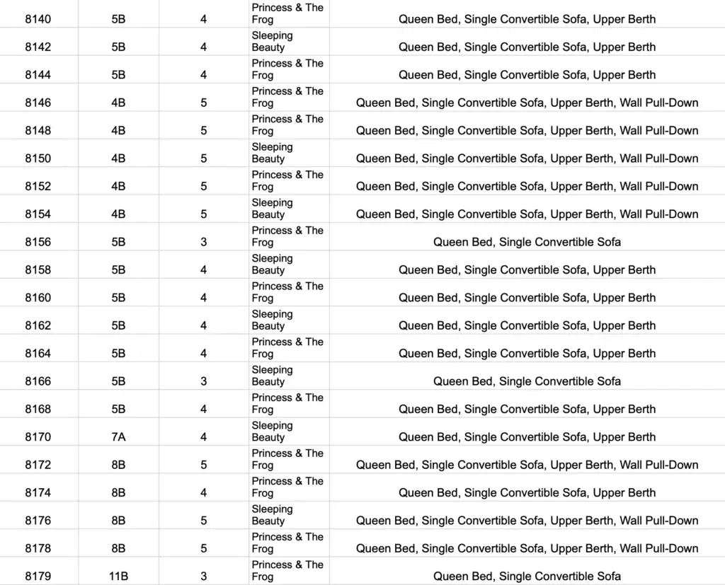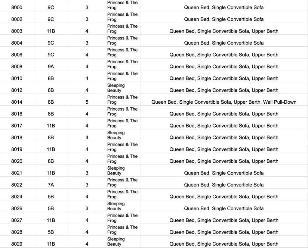 Here is a complete guide to all the stateroom themes – so that you can look up the one you have already booked, or you can use this to decide which stateroom that you want to book.