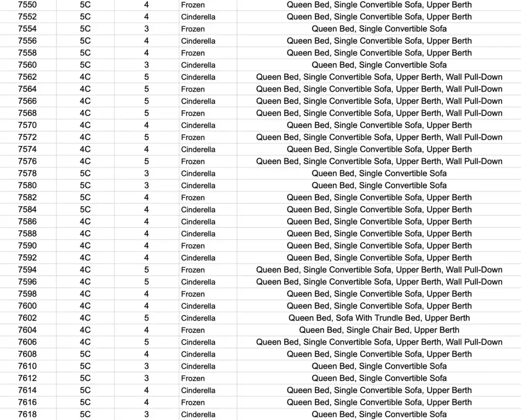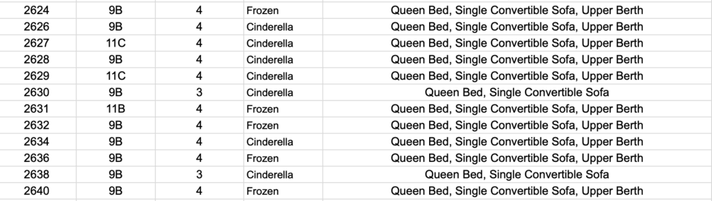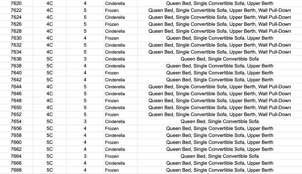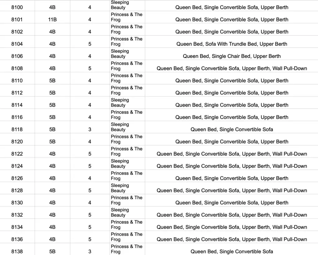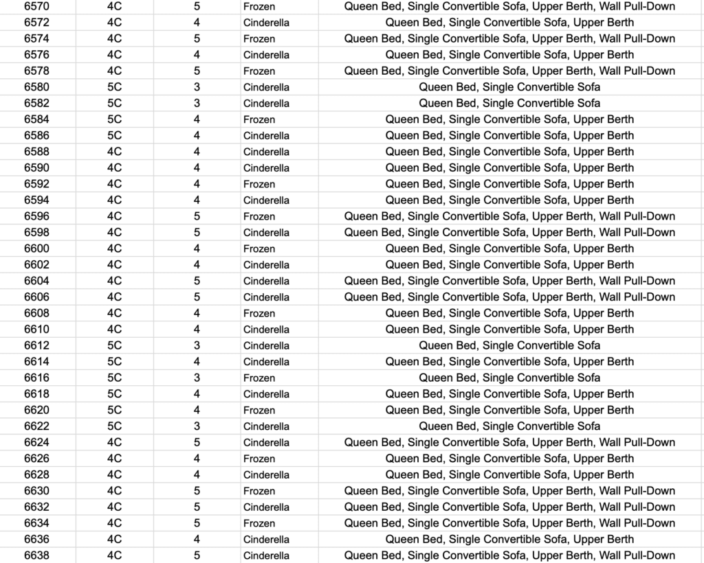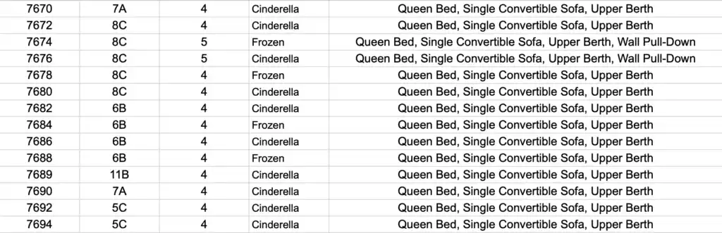Here is a complete guide to all the stateroom themes – so that you can look up the one you have already booked, or you can use this to decide which stateroom that you want to book.