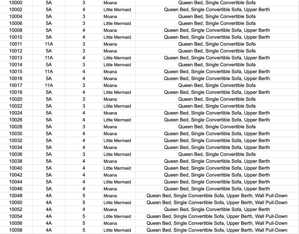 The Moana and Little Mermaid staterooms are here and deck 11.