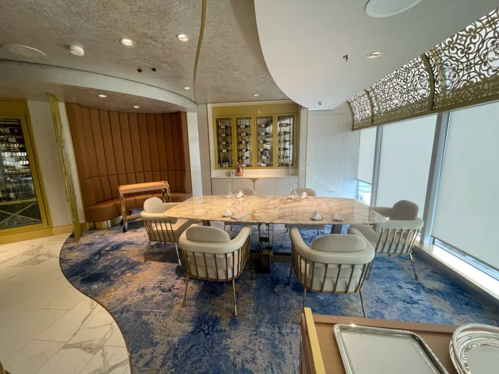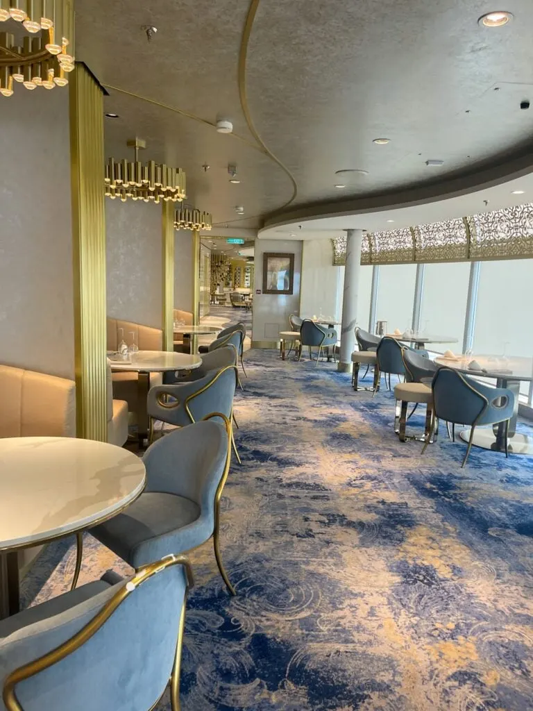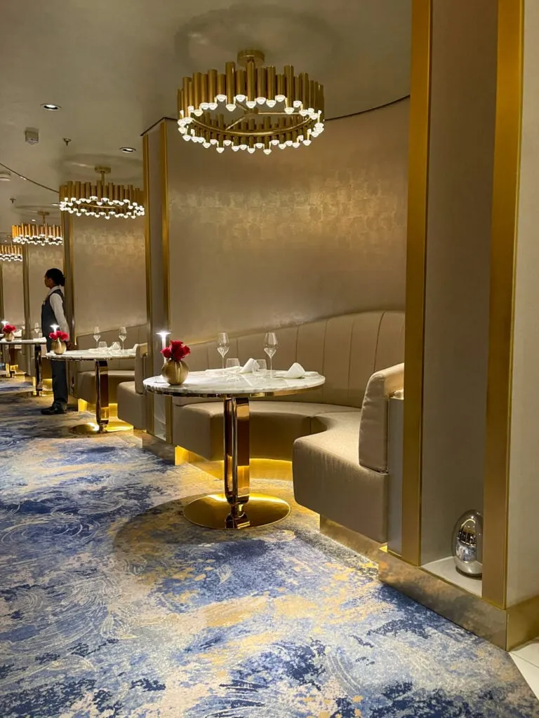 Set on Deck 12 aft, just past The Rose Lounge (another Beauty and the Beast-inspired venue), Enchanté’s ambiance is stunning. With sweeping ocean views, elegant decor, and a refined atmosphere, the restaurant feels like a hidden gem on the ship.