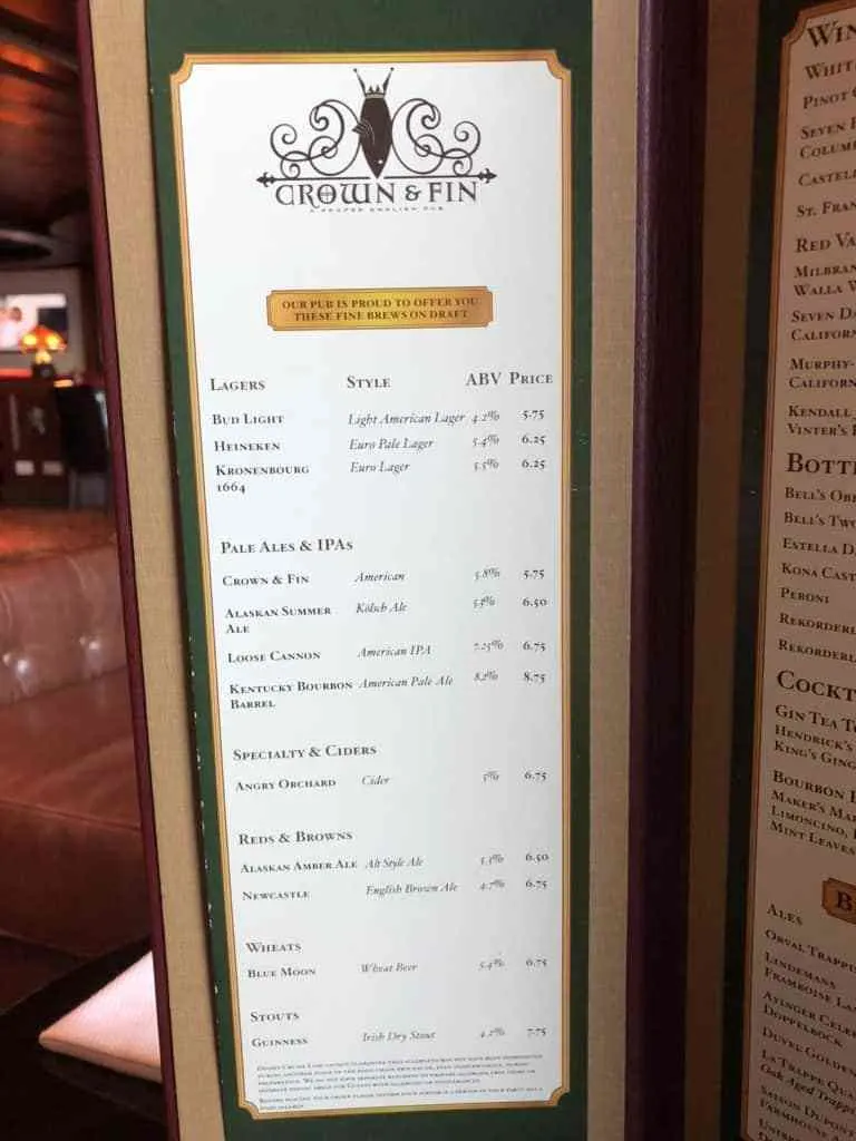 The Crown and Finn is my favorite Disney Wonder Bar.