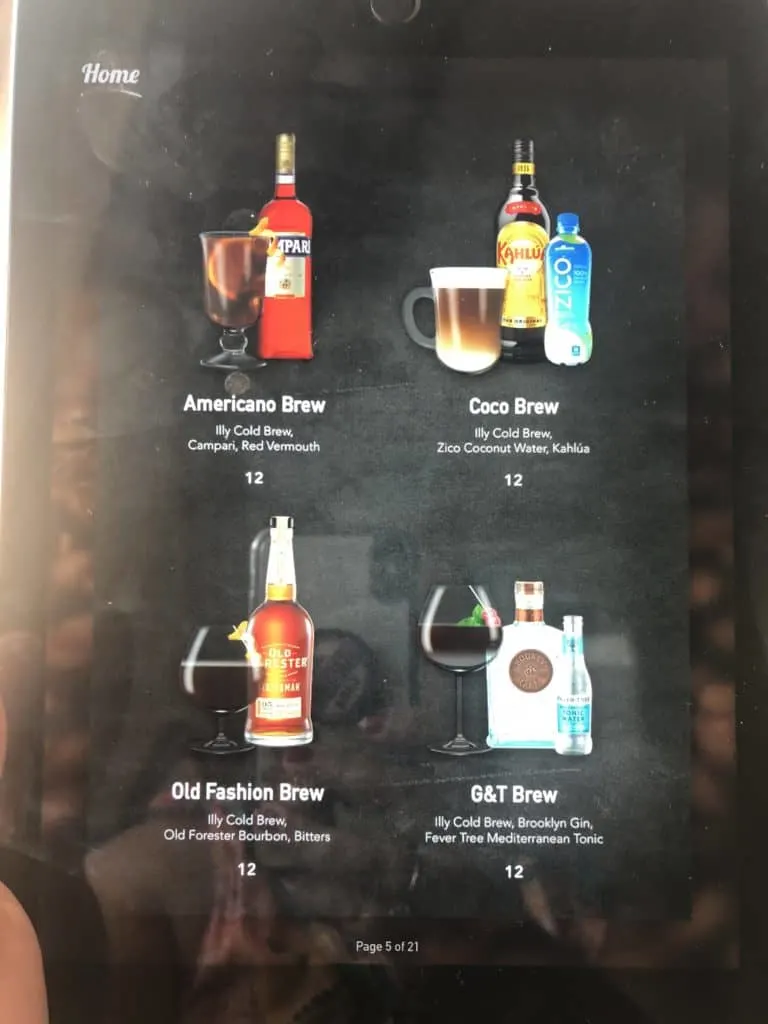 The Cove Cafe Menu includes coffee, tea and adult beverages.