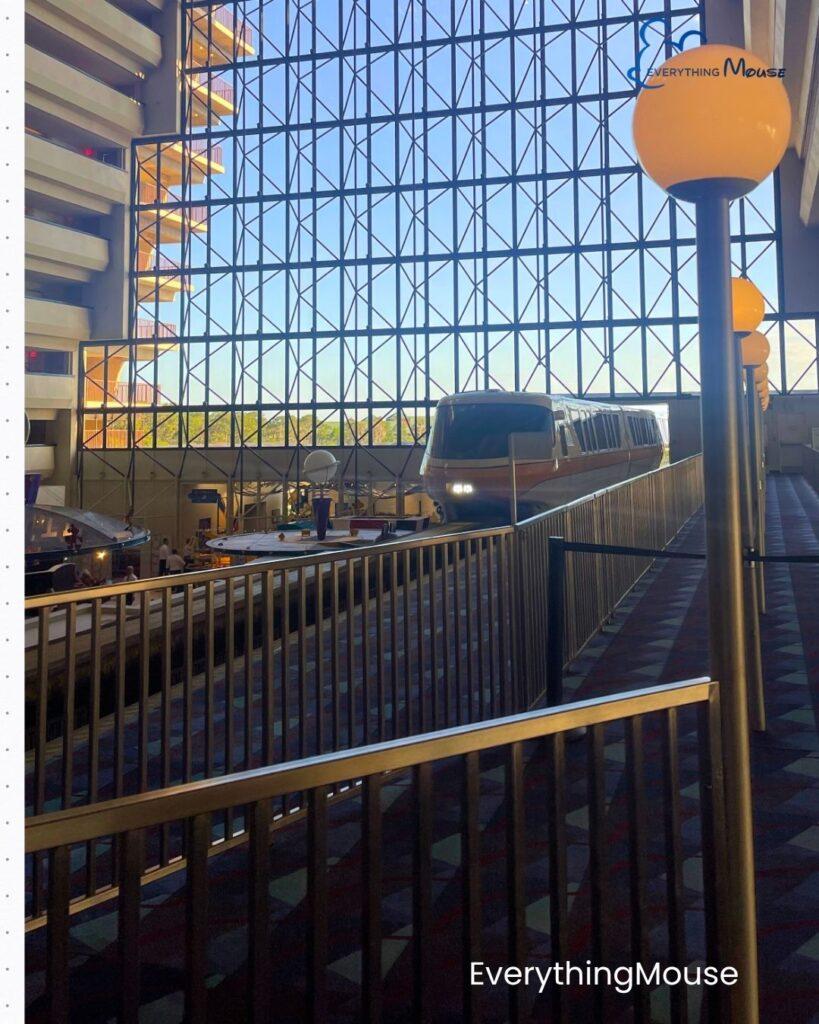 Its striking A frame design allows the Monorail to glide directly through the center of the hotel — an image that remains one of the most iconic views in Disney history.