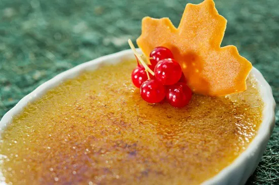 Maple Creme Brulee with Maple Whipped Cream and Raspberries $13.00