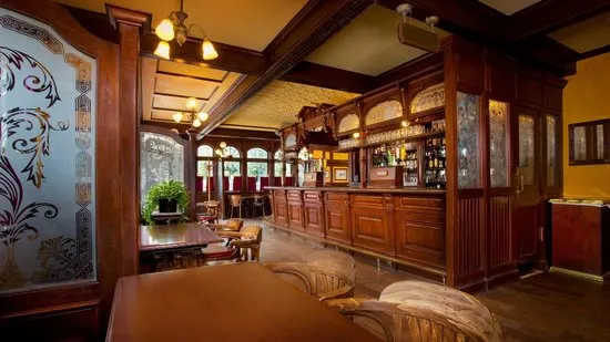 Take some time to look at the decor including the plates above the rail and the ornate ceiling.