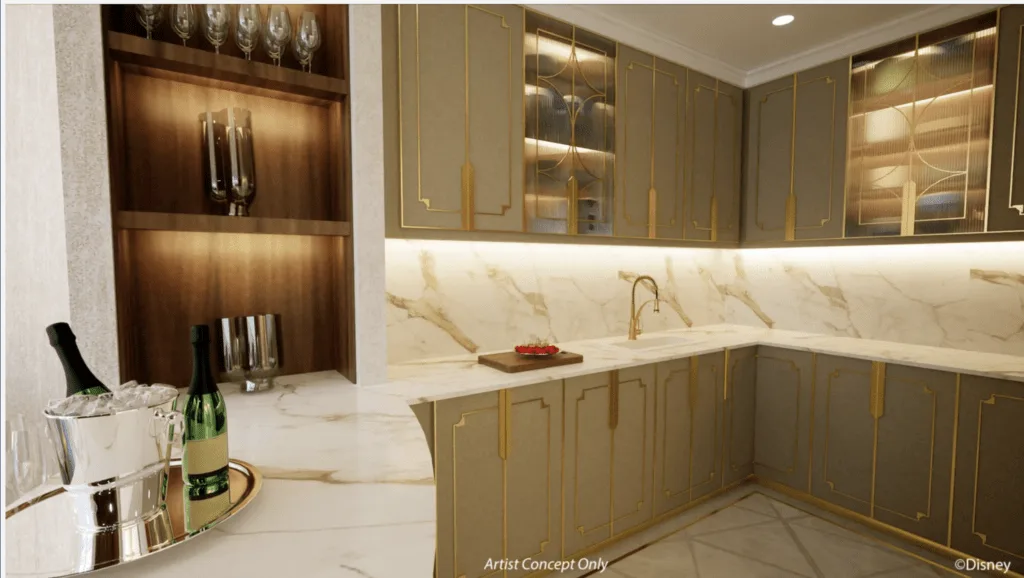 Adorned with gilded features that reflect the Disney Dream’s art deco style, this stunning suite will immerse guests in Sorcerer Mickey’s magic.