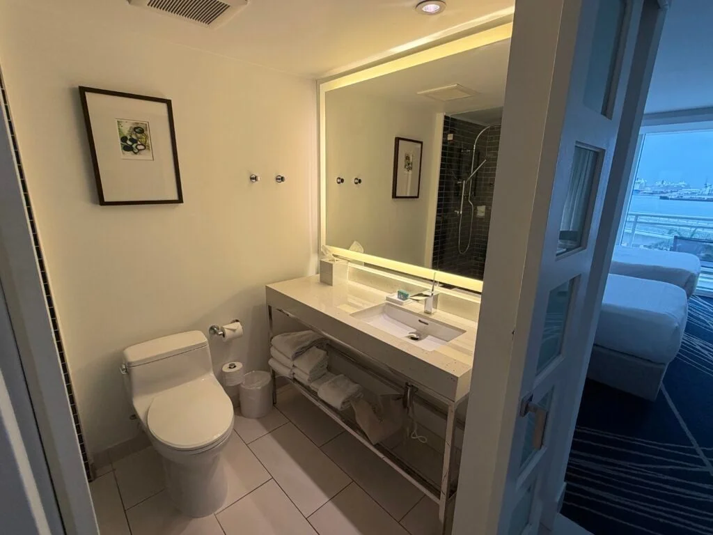 The hotel sits along the Intracoastal Waterway, so you will see cruise ships sailing past — which definitely adds to the pre-cruise excitement.