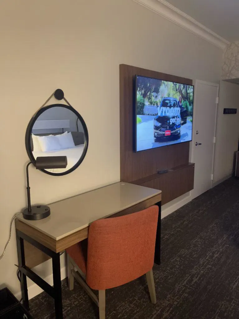 There was also a small desk and a definitely larger than standard for a hotel room television!