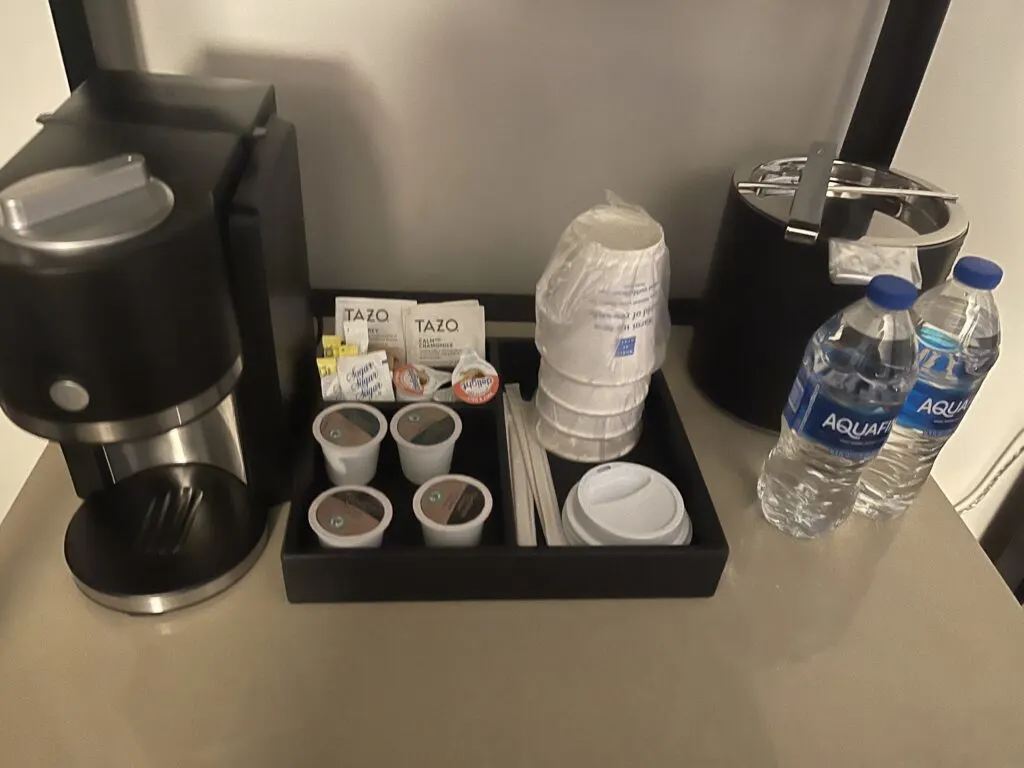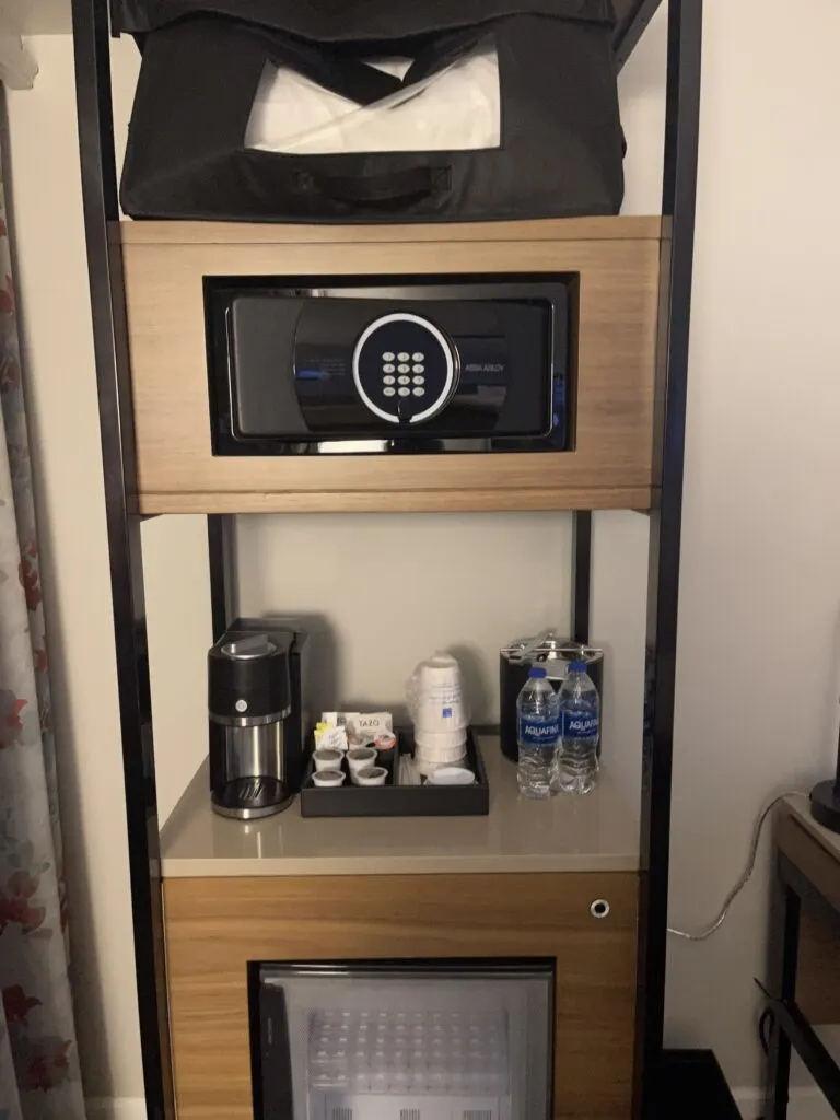 There was a safe, refrigerator, and a coffee and tea maker. This was particularly welcome in the morning when I definitely needed a caffeine boost.