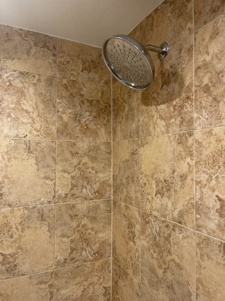The bathroom was a good size, with a shower over the bath. The shower head was nicely upgraded and the water pressure and temperature controls were good.