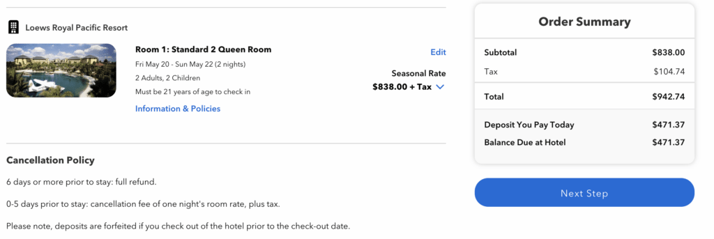 Let’s have a look at some hotel pricing to see how much a 2-night stay from Friday, May 20 to Sunday, May 22, 2022, would cost a family of 4 with 2 adults and 2 children.