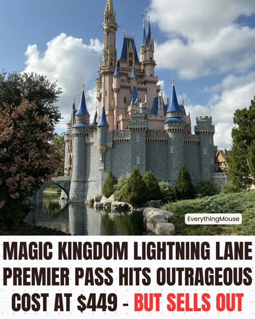 Magic Kingdom’s Lightning Lane Premier Pass has now sold out for seven consecutive days, February 12–18, 2026, with pricing reaching $449 per person, per day — tying the highest price point we’ve seen so far.