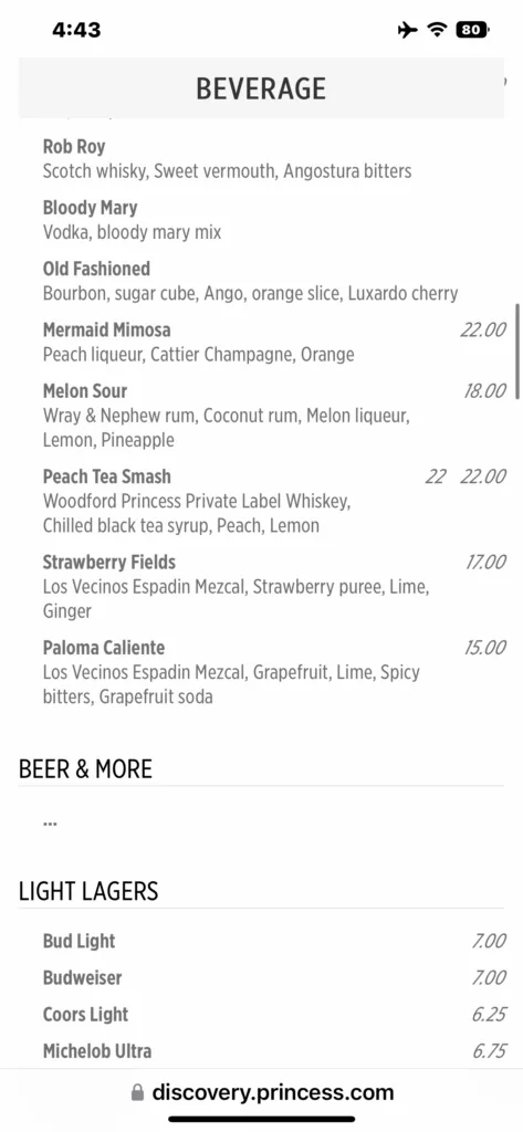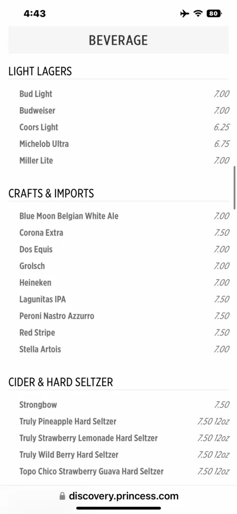 This guide shows you the drink prices and menus so that you can work out whether or not a Princess Cruise Drink Package is worth it for you.