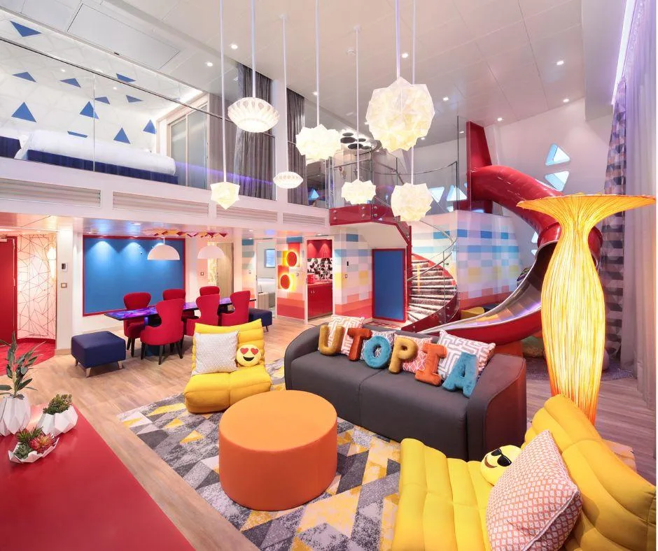 Their Ultimate Family Suite and Ultimate Family Townhouse (available on Icon and Oasis-class ships) are dreamlike spaces for families, featuring colorful slides and private game rooms.