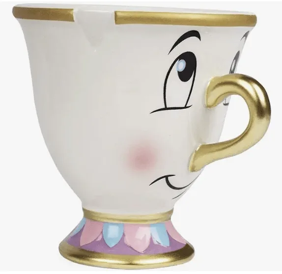 With an indented chip on the rim (created with a paint effect), metallic gold trims, and the sweet face of Chip from Beauty and the Beast – this coffee mug is sure to delight any fan of the beloved Disney movie.