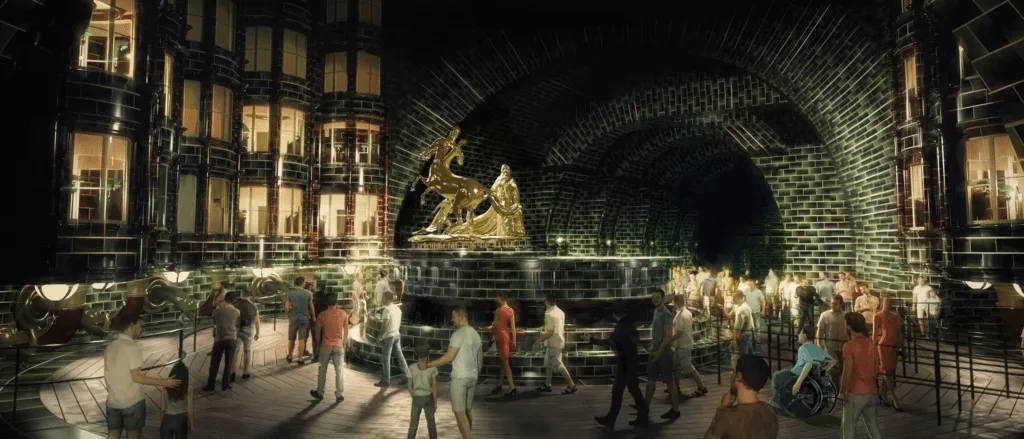 You’ll enter a fireplace and be engulfed in a green flame then find yourself in the grand entrance to the Ministry Of Magic, just like the movies.